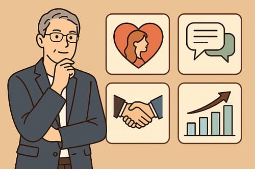 50代男性が婚活を行う際、年収が必ずしも成功を決定づける要因ではありません。年収が平均以下の場合でも、魅力的なパートナーを見つけるための戦略を活用することが重要です。以下に具体的な4つの戦略を紹介します。